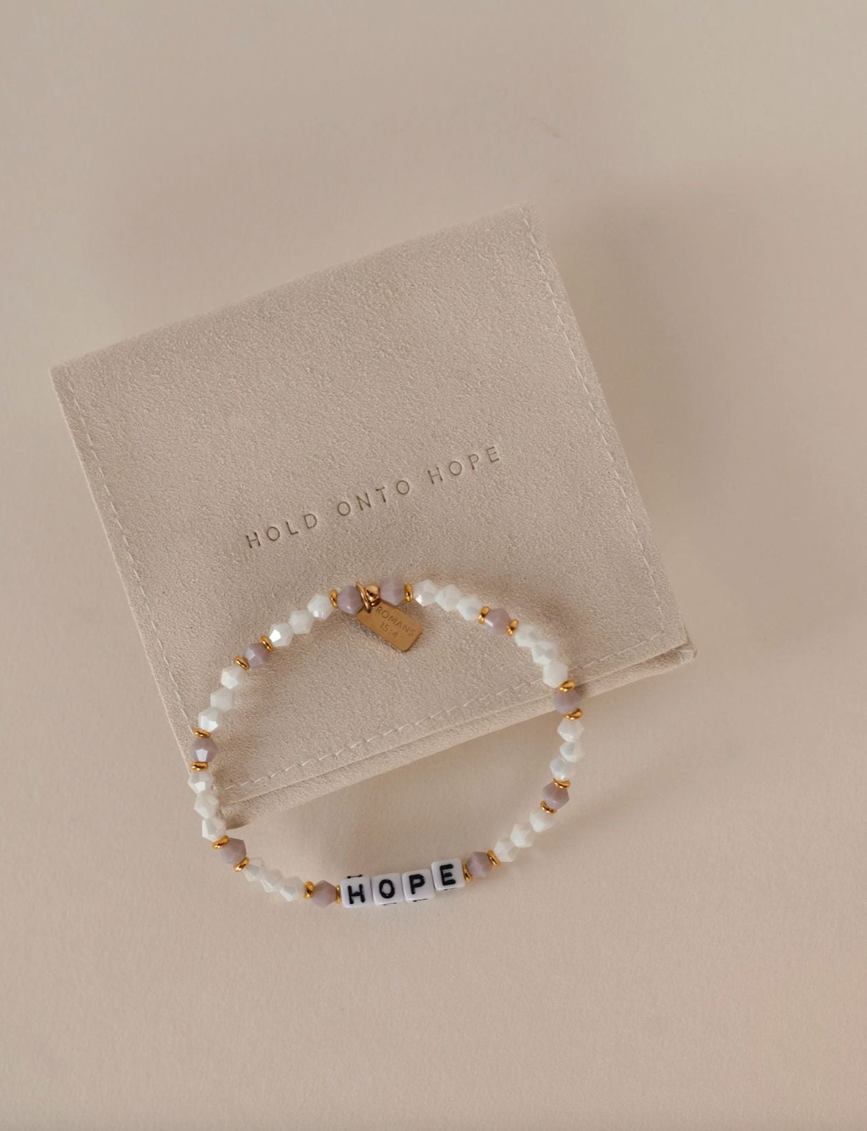 - tiny cotton card with scripture reference inside the pouch with bracelet
