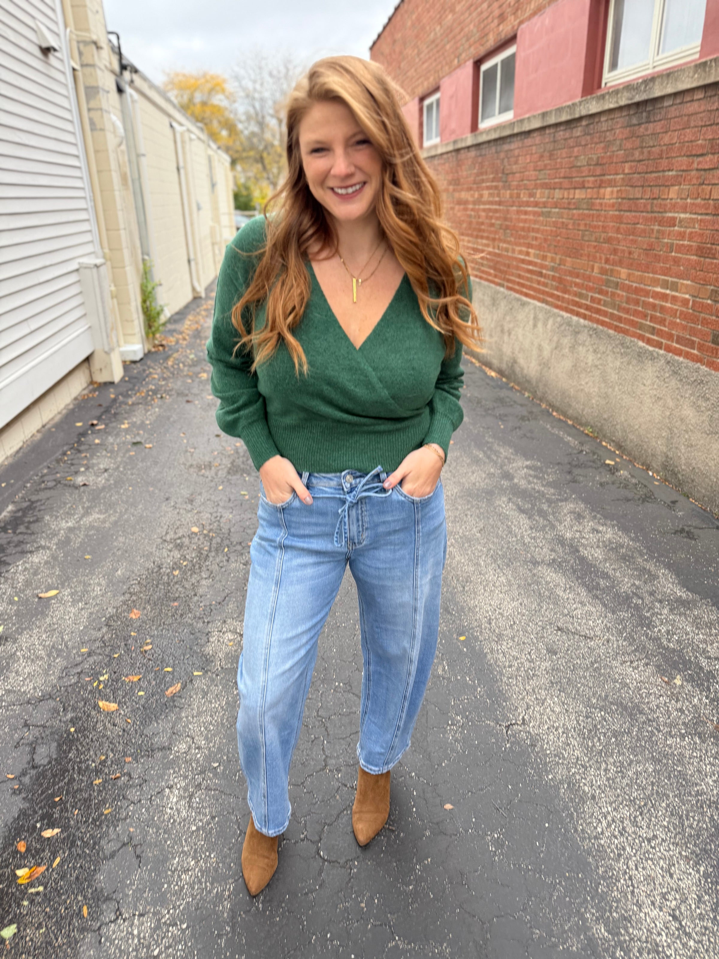 Cozy Wrap Sweater - Dark Green