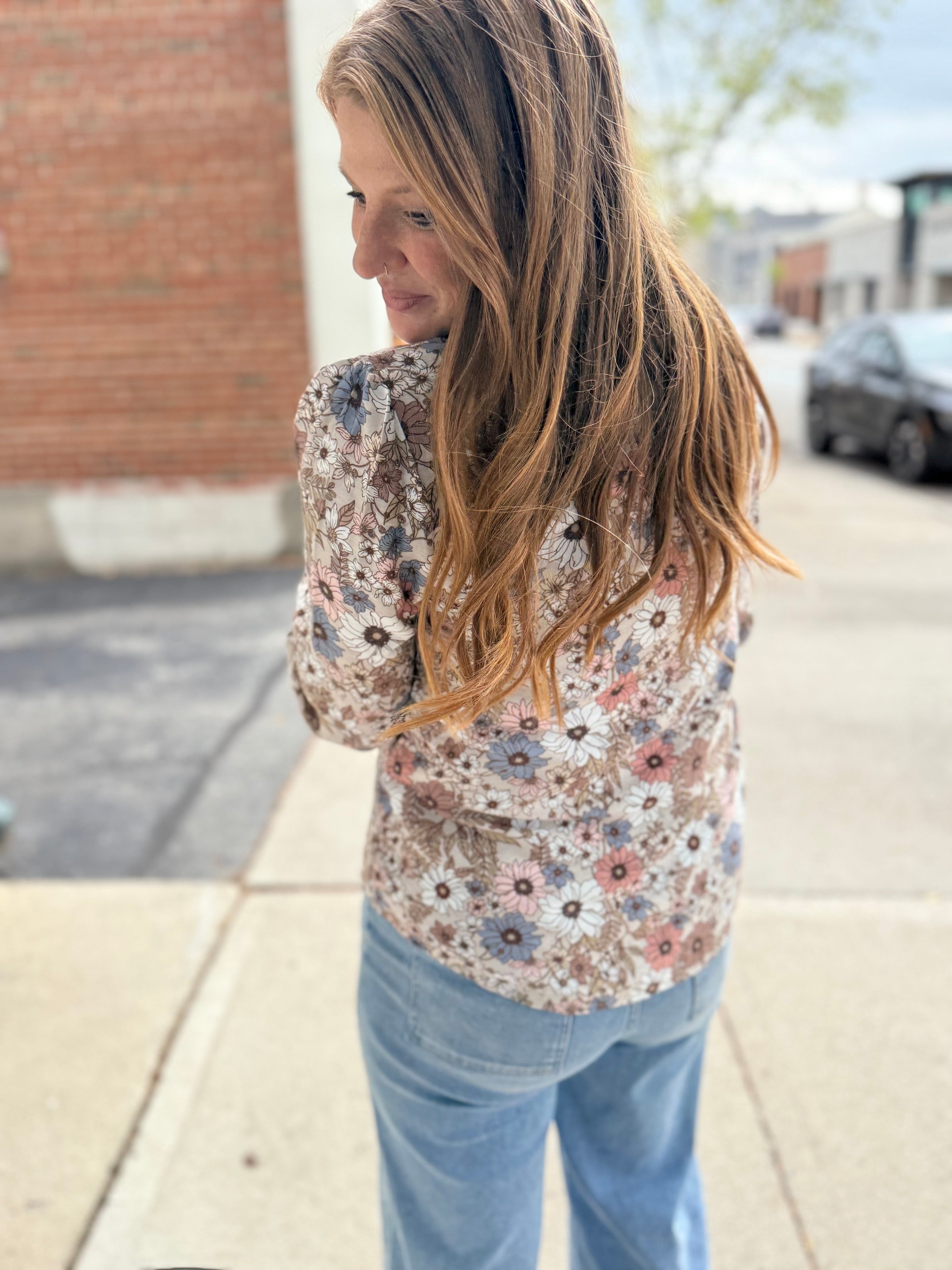 This pastel floral top brings a playful touch to your wardrobe with its lightweight fabric that keeps you cool and comfortable all day. The charming ruffle neckline adds a flirty detail, perfectly complementing the fun, breezy design. Ideal for sunny days and casual outings, it’s a cheerful piece that brightens up any outfit.