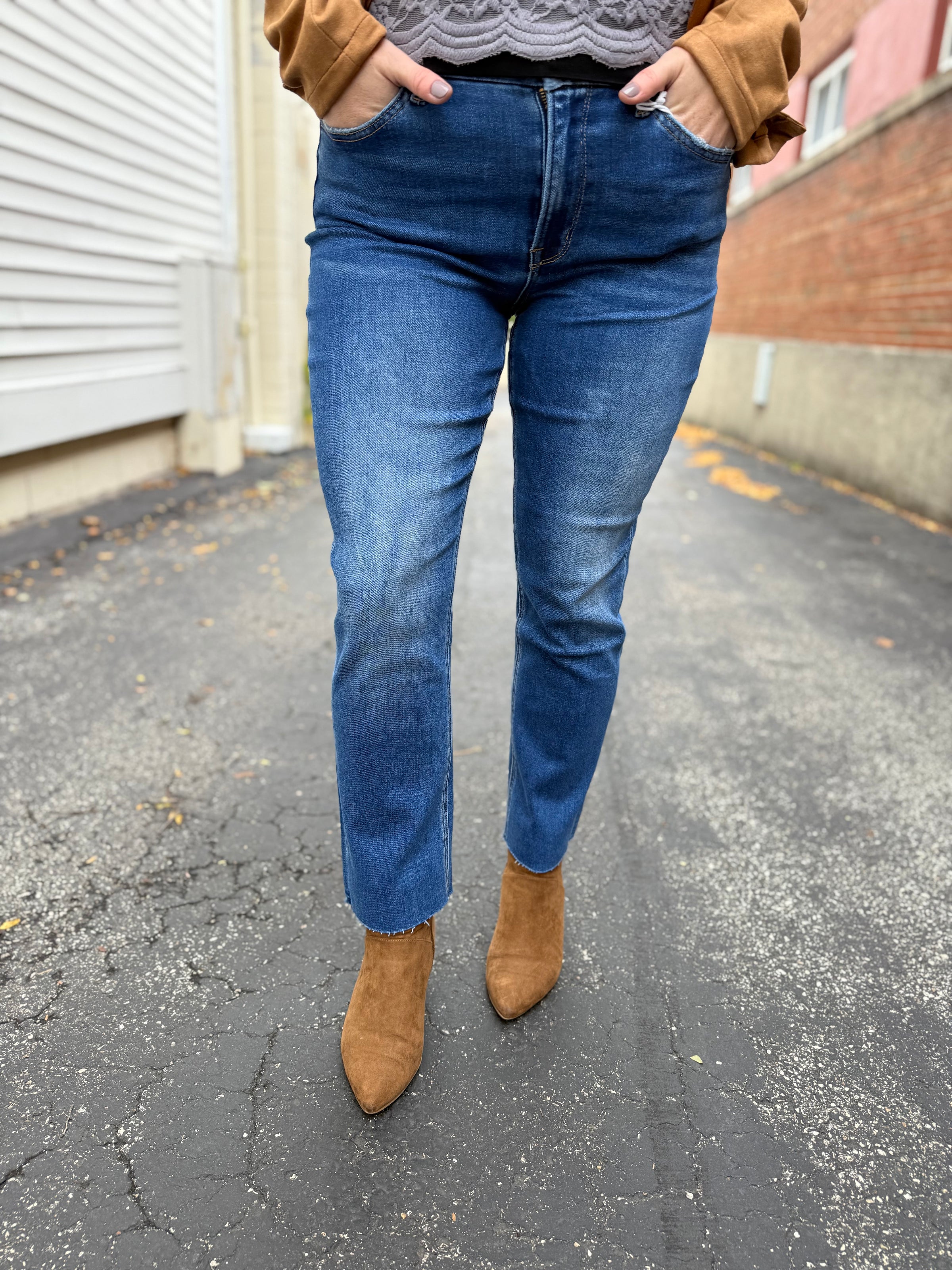These Medium Wash Slim Straight High Rise Jeans bring a perfect blend of comfort and style to your everyday wardrobe. With their flattering high-rise fit and sleek slim straight cut, they effortlessly hug your curves while giving you room to move. The classic medium wash adds a versatile touch that pairs easily with any top or shoe. Whether you're running errands or meeting friends, these jeans keep you looking great and feeling free all day long.