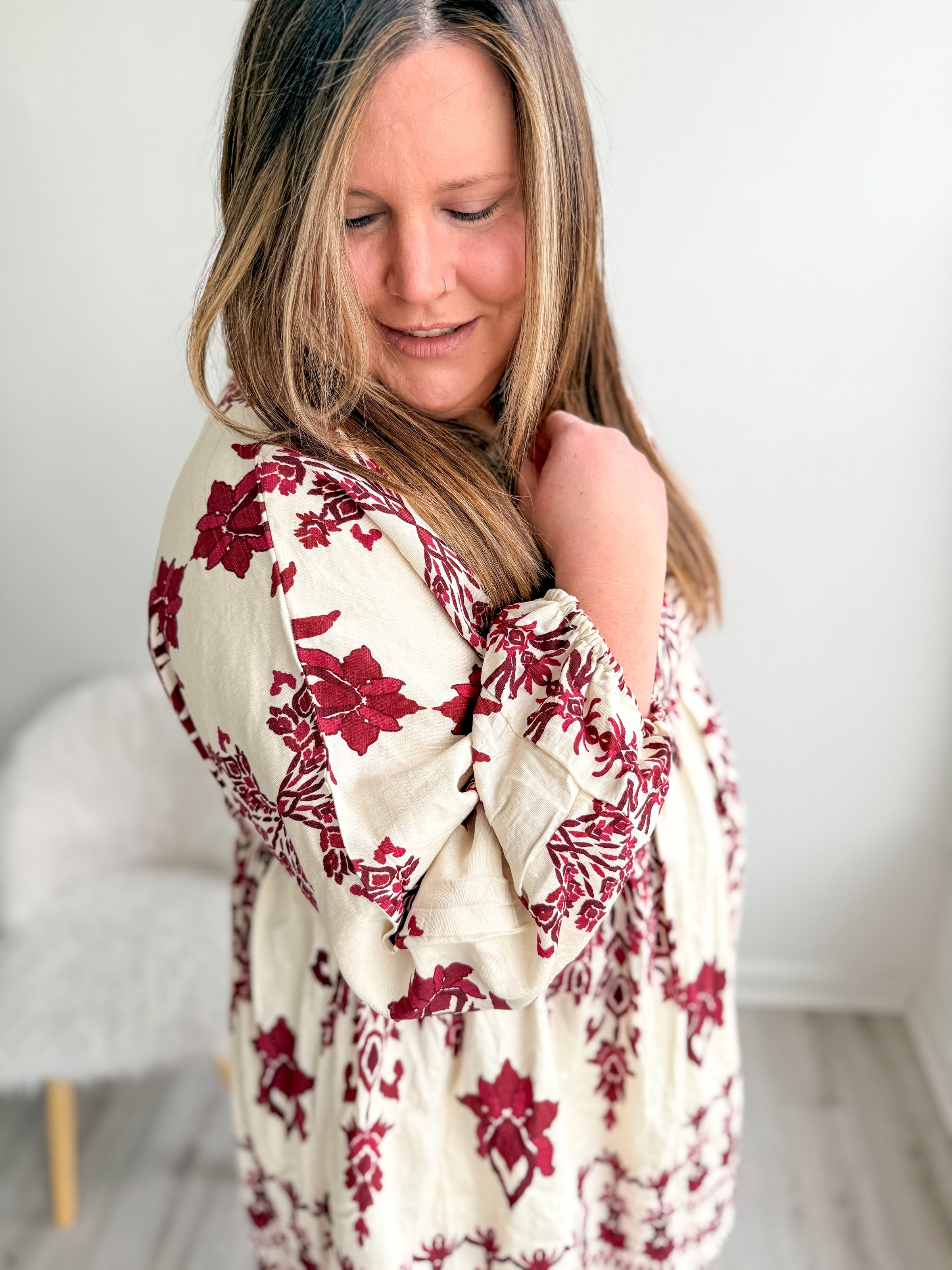 Twirl into autumn vibes with this stunning burgundy boho dress, where rich wine tones meet delicate floral details for an effortlessly romantic look. Perfect for festivals, date nights, or whenever you want to channel your inner free spirit with a touch of botanical charm.