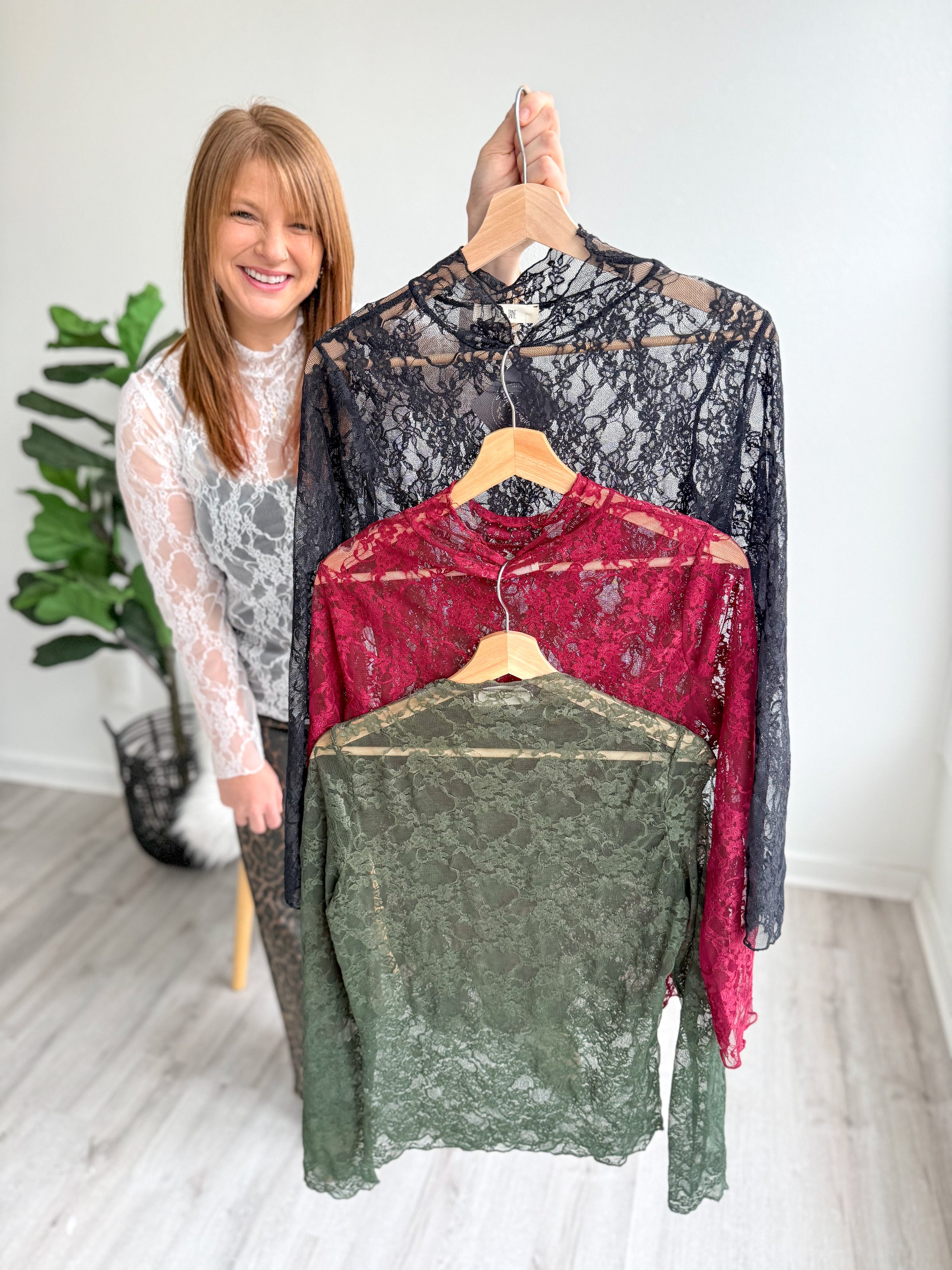 Sheer elegance meets endless styling possibilities with this delicate lace long sleeve. Rock it layered over a cami for a flirty, feminine vibe, or wear it solo as a statement piece that whispers rather than shouts. The lightweight black lace drapes beautifully, making it your go-to for adding texture and intrigue to any outfit. Versatile, chic, and unapologetically fun.