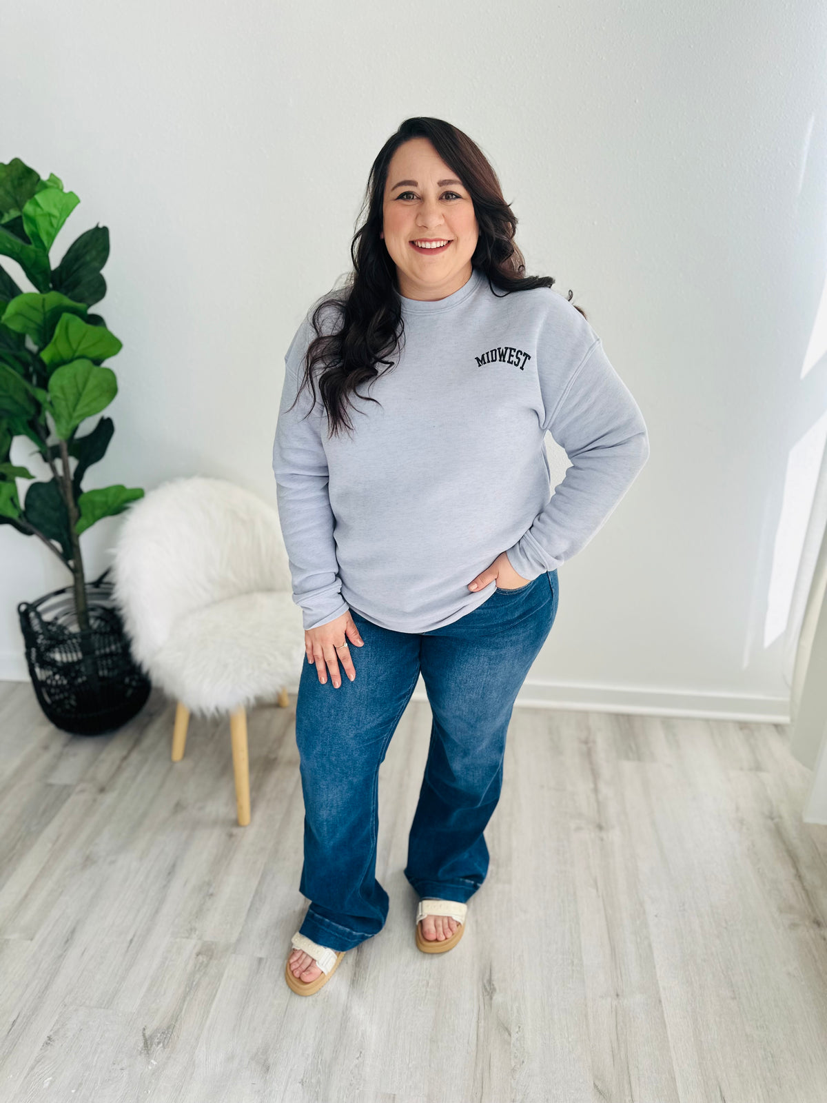 Keep it cozy and Midwestern with our Midwest Graphic Crewneck. Perfect as a gift (or for yourself!), this super soft sweatshirt embraces the quirks and charm of the Midwest. Spread some Midwestern vibes wherever you go!