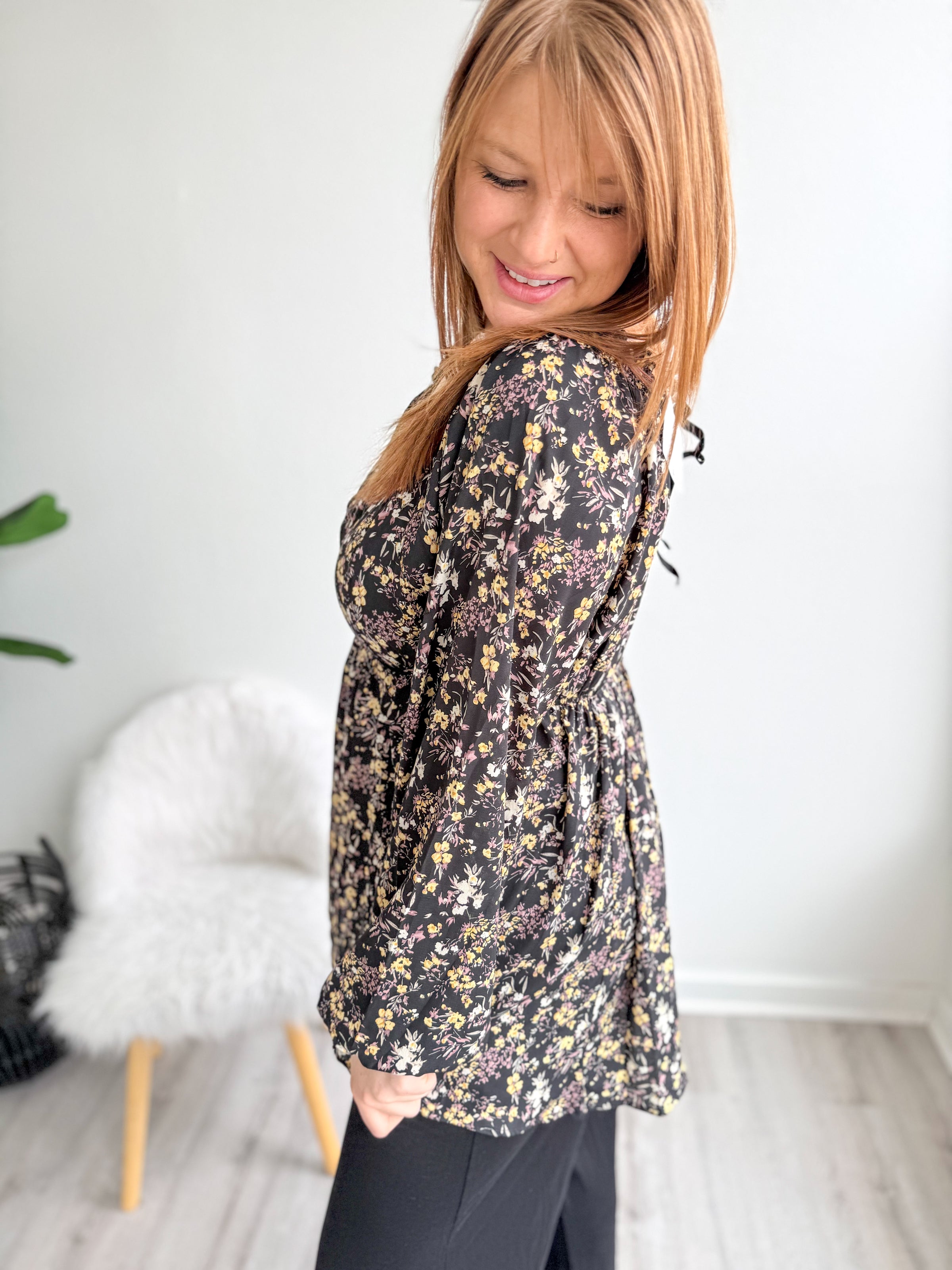 This Deep Floral Babydoll Top is crafted from a soft, comfortable material that feels as good as it looks. Its playful design makes it effortless to dress up for any occasion, adding a flirty touch to your outfit. Perfect for those who love a sweet, feminine vibe with an easygoing style.