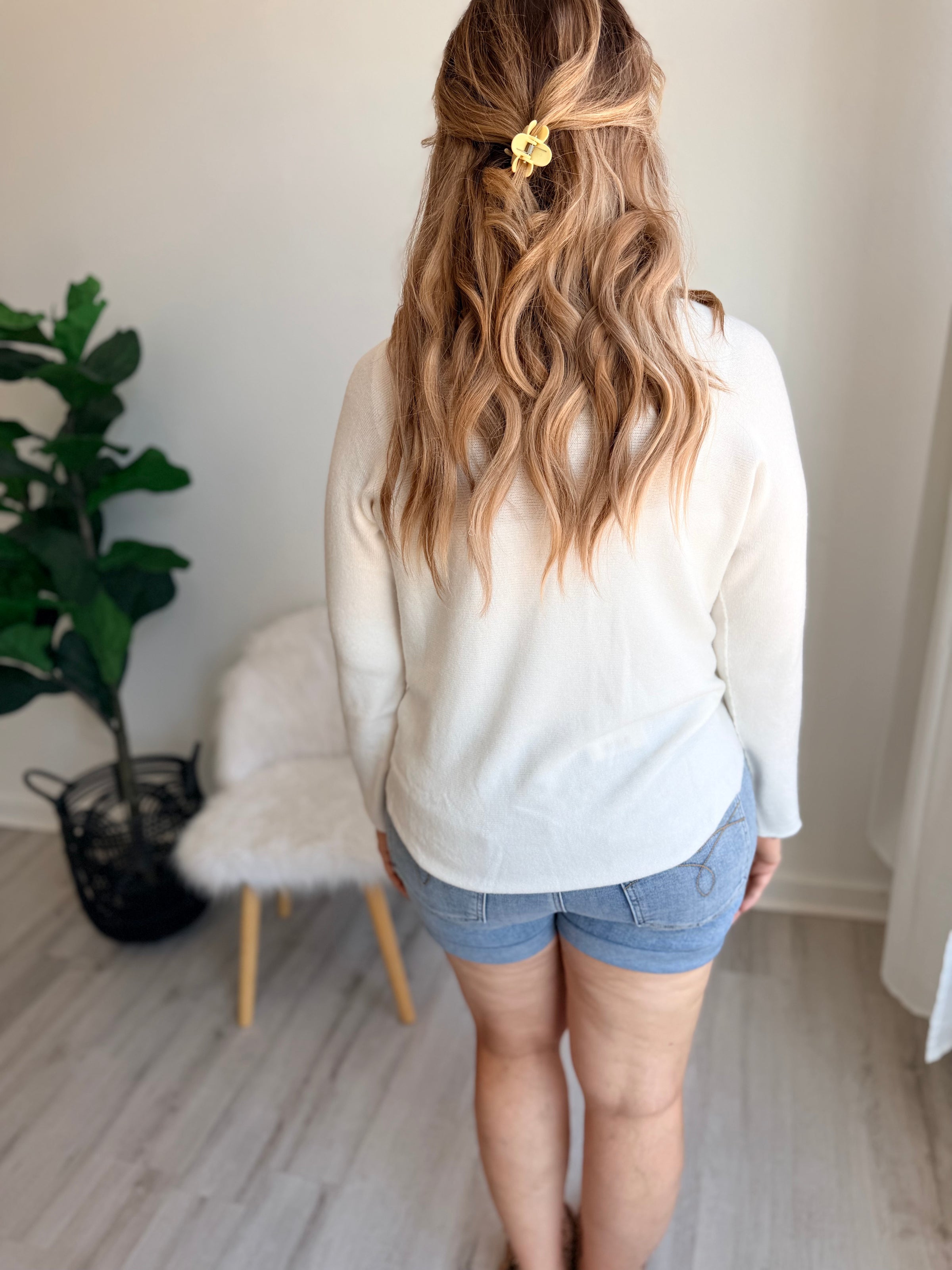 Wrap yourself in cloud-like comfort with this dreamy ivory sweater that's as easy to love as it is to wear. Crafted from soft, lightweight fabric, it's the perfect layering piece for any season—throw it over a tee, pair it with your favorite dress, or rock it solo. One size fits most, making it the ultimate grab-and-go essential for anyone who believes cozy shouldn't mean bulky. Your new go-to is here.